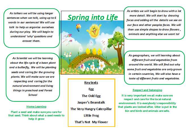 Below is an overview of our topic this half term with the areas of learning we are focusing on. Although all areas of learning are supported every day, through a topic we can enhance children’s interests and ignite new interests as they learn about the world around them. The topic letter will give an insight into the learning that is happening in preschool and ideas about how to support your child at home.