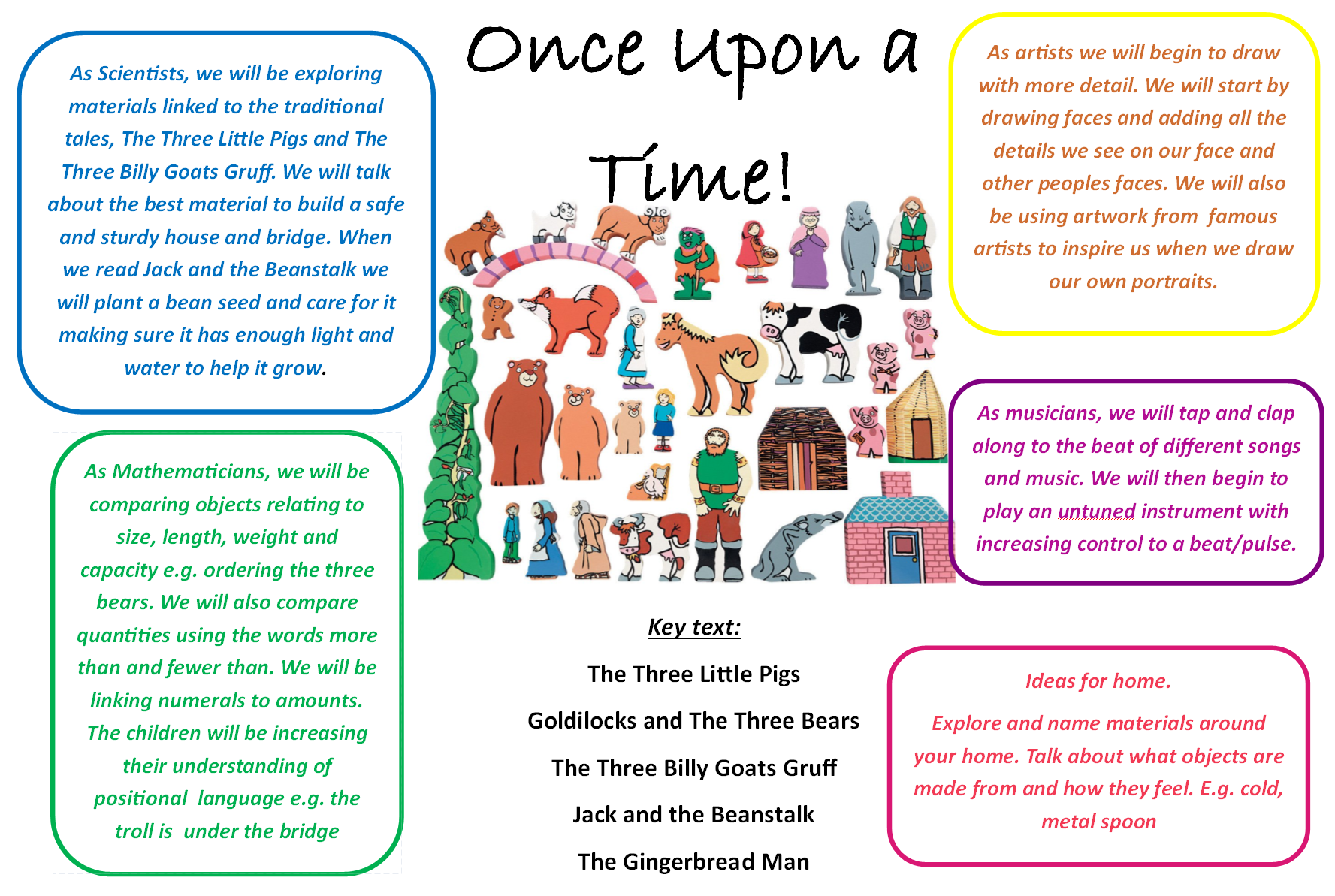 Below is an overview of our topic this half term with the areas of learning we are focusing on. Although all areas of learning are supported every day, through a topic we can enhance children’s interests and ignite new interests as they learn about the world around them. The topic letter will give an insight into the learning that is happening in preschool and ideas about how to support your child at home.